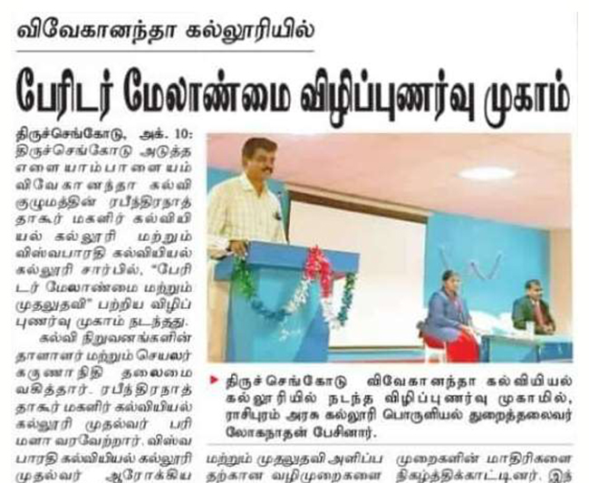 Participated in Inter Collegiate Cultural Competitions organized by Arima Sangam at Erode held on 04.01.2020.