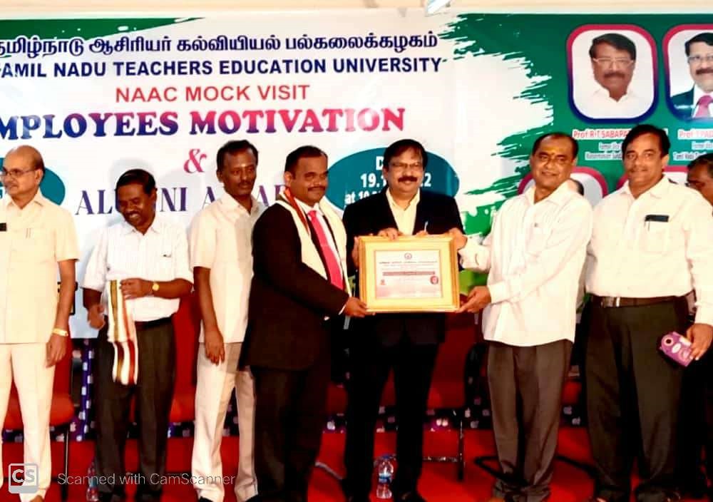 Dr.S.Arockiyasamy, Principal, Viswa Bharathi College of Education and Mrs S.Kalamani, Assistant Professor in Education, Rabindharanath Tagore College of Education for Women has received best Teacher Award from Tamil Nadu Teachers Education University, Chennai on 19.10.2022.