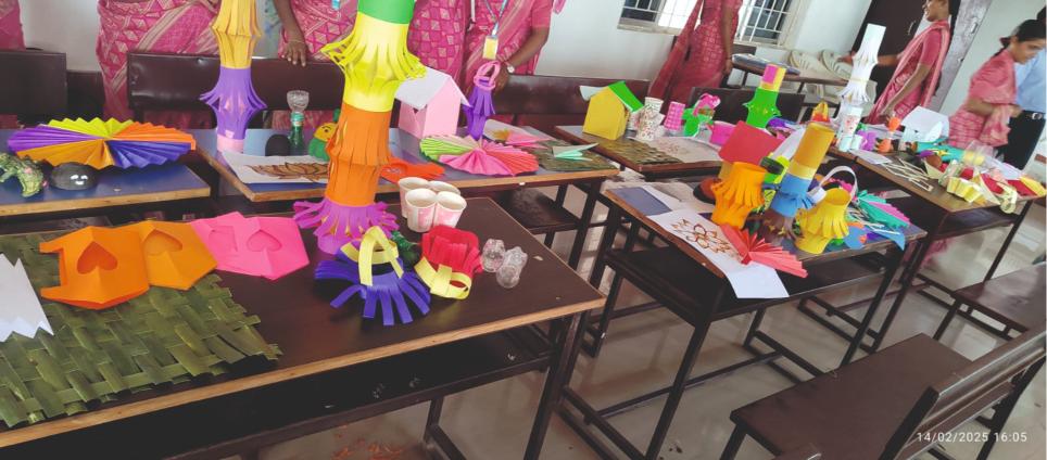 We conducted a one - day workshop on "Art and Craft" on 14th February 2025. Mr.S.Palanivel, Art & Craft Master, Namakkal, acted as Resource Person. He demonstrated and explained various instructional and other materials in a very effective manner.